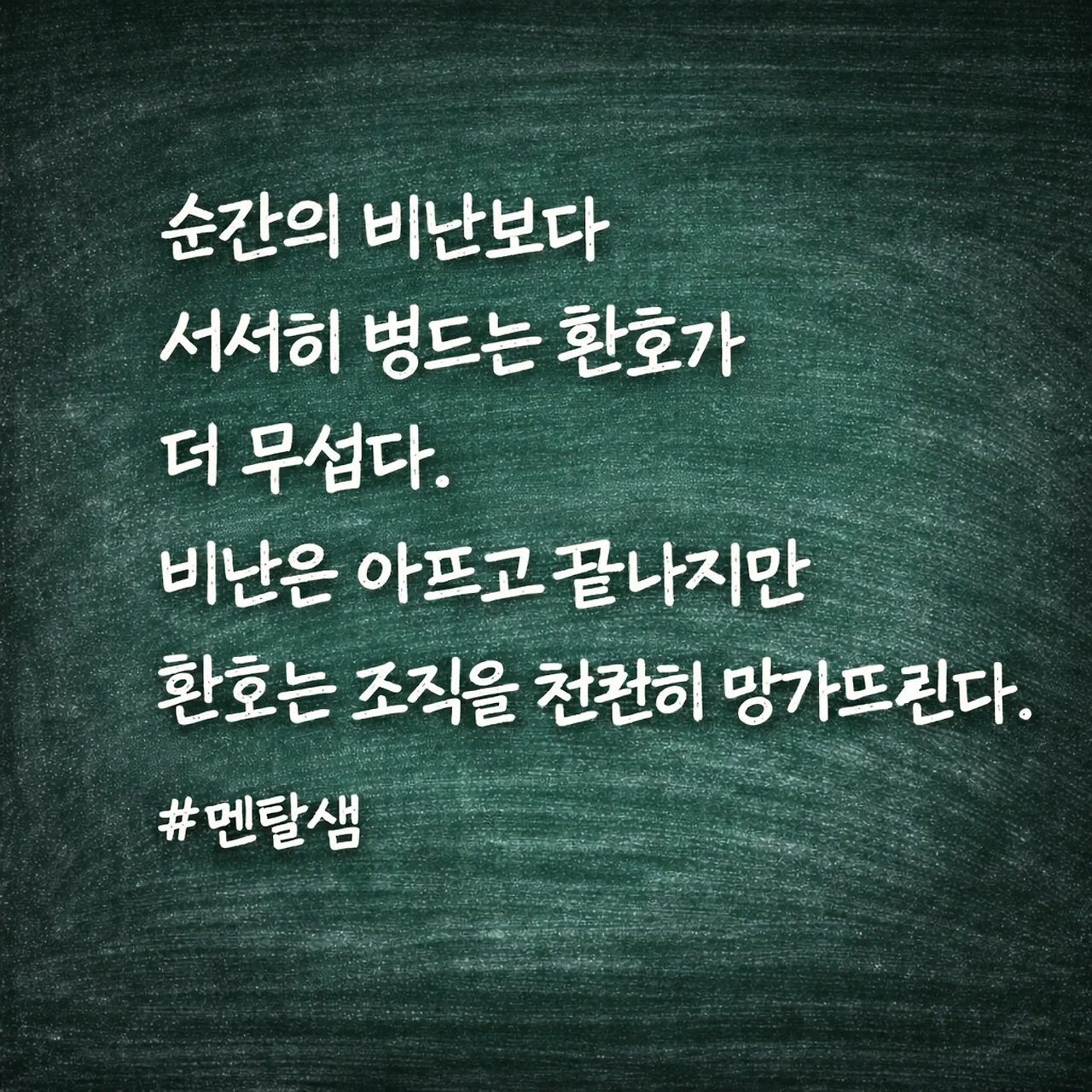 무너지는 조직일수록 침묵 아니면 박수뿐이다.