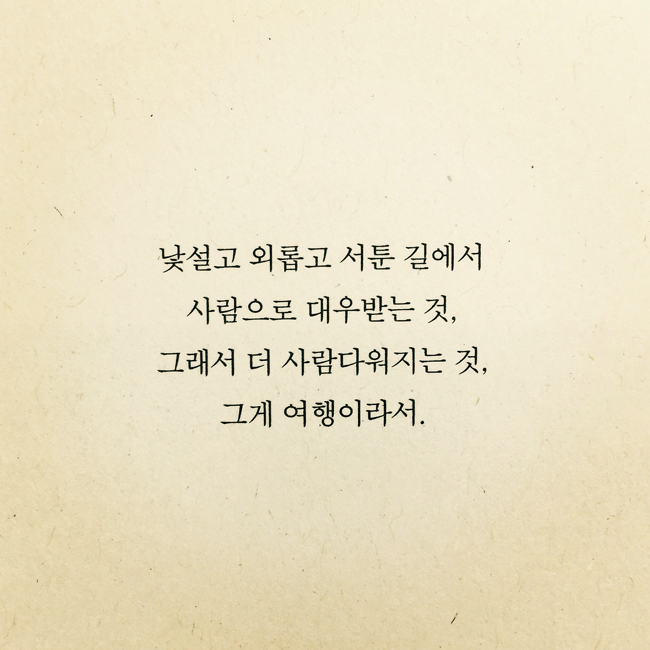 낯선 곳에 또 한번 나를 덩그러니 놔둠으로써 느껴지는 생기와 숨쉬는 생각들이