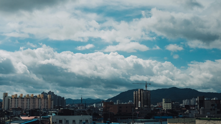 푸른 바다같은 하늘 새하얗게 부서지는 파도처럼 뭉실뭉실한 구름이 펼쳐져 있었다.