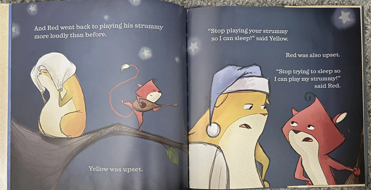 지금 자고 싶은 옐로와 아직은 좀더 노래를 부르고 싶은 레드.