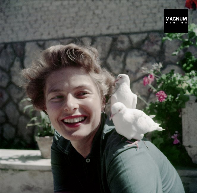 "잉그리드 버그만이 햇살이 드리운 정원에서 무릎을 꿇은 채 그녀의 아들 중 한 명과 함께 있었다. 그녀는 바지 차림에 녹색 폴로티를 입고 메이크업을 하지 않고 있었는데 비둘기가 그녀의 어깨 위에 막 내려앉았다. 그녀는 영화계 별이라기보다 그저 친구의 카메라 앞에서 웃고 있는 한 명의 (평범한) 사람이었다. 잉그리드 버그만은 데이비드 시모어를 신뢰했다.”