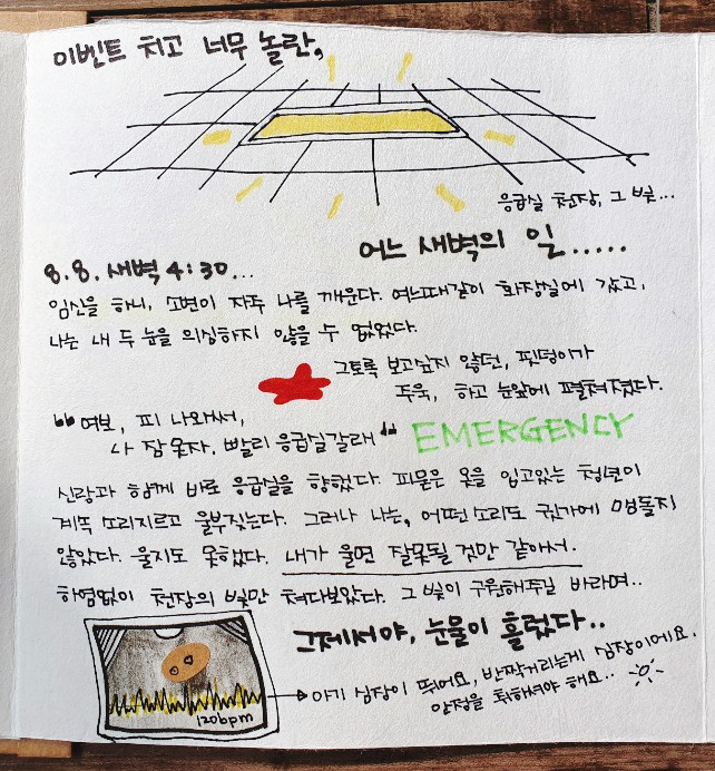 응급실에서 나오자 이미 아침은 환히 밝아 있었고, 우리는 그렇게 불안하고도 새로운 아침을 맞이했다.