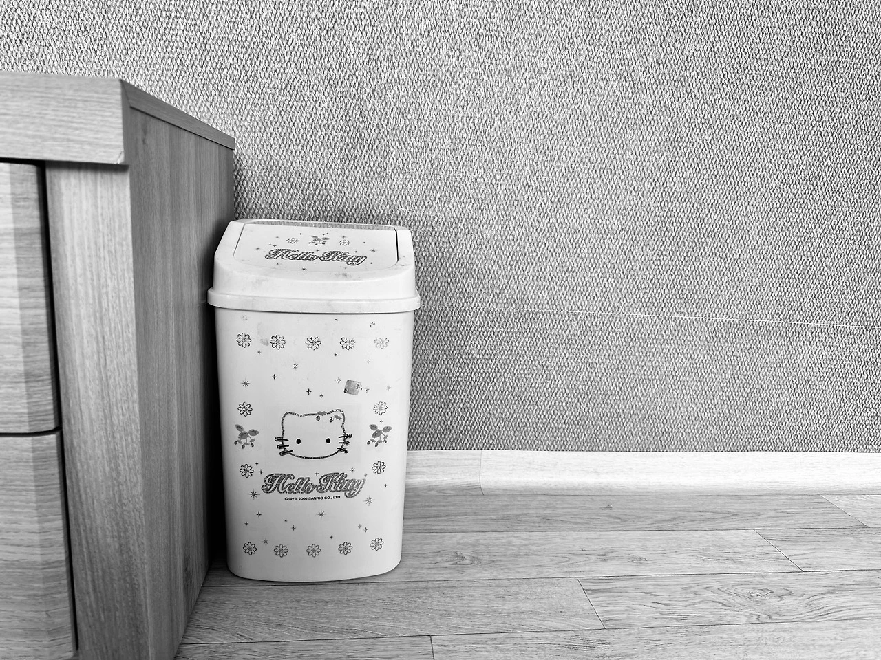 아빠는 손님들이 머무는 이층방들을 전혀 리모델링 하지 않았고, 내 눈에 꽃무니 벽지에 이 키티 쓰레기통은 정말 시선강탈이었기 때문에..