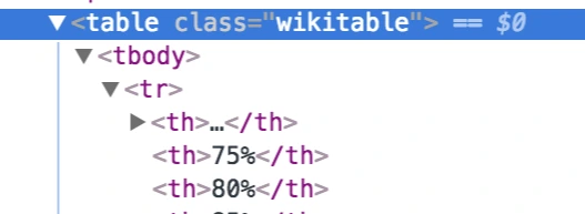 #table의 class명인 "wikitable을 이ㅇ해서 가져온다"
