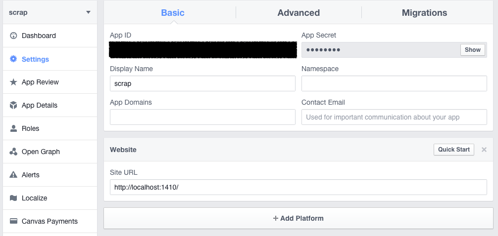 페이스북 App Setting에서 Url을 'http://localhost:1410/'로 바꿔주자. 그리고 다시 콘솔로 들어가서 아무 키나 누르면 끝!