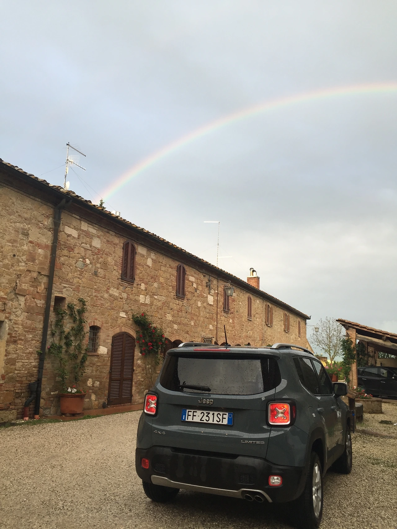 옷을 도톰히 입고 나오니 어느새 비가 그쳤다. 차 위로 그림 같은 무지개도 떠있다. 정말 오랜만에 보는 선명한 무지개였다. 폭우를 뚫고 눈을 부릅뜨고 운전하느라 지친 나에게 주는 선물 같았다. 오늘의 고생들로 이번 여행의 악운은 끝이 났다고 앞으로는 좋은 날씨와 행복한 여행을 즐기기만 하라고 약속해주는 무지개인 것 같아서 금세 피로가 풀리고 기분이 말랑말랑해졌다.