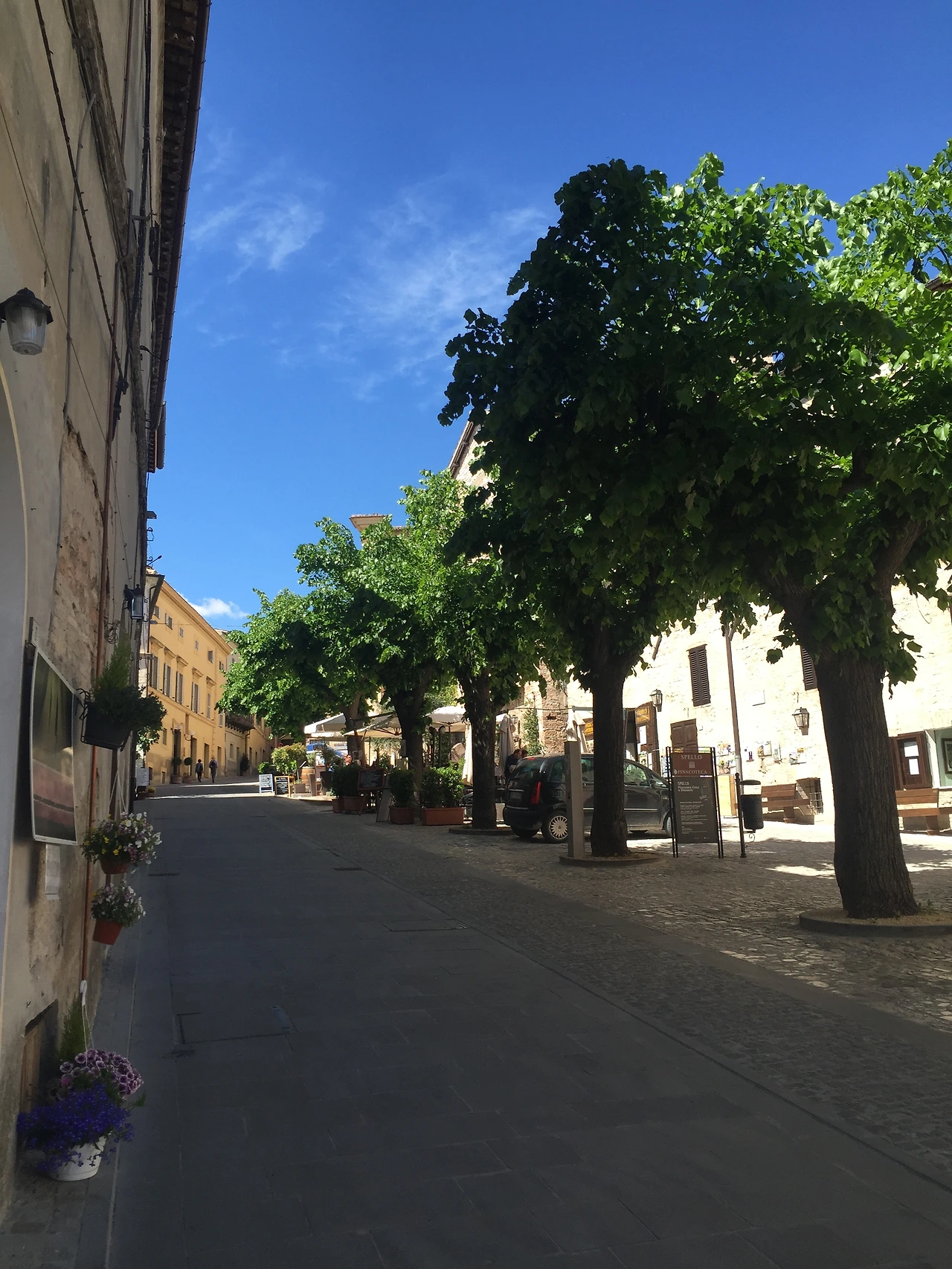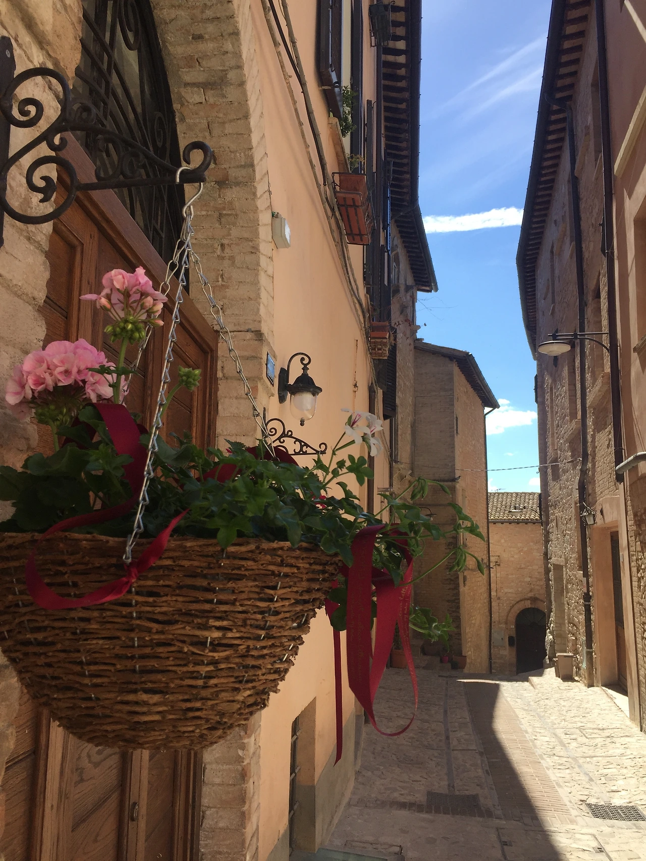 아시시에 가기 전, 꽃의 도시라 불리는 스펠로(Spello)에 들렸다. 6월경 열리는 꽃 축제(인 피오 라타)로 유명한 도시이다. 책에서 본 사진에서 건물의 벽면에 꽃 화분이 예쁘게 걸려있는 모습이 인상적이었다. 마을 입구에 들어서니 6월 축제를 대비해서 길 보수 공사가 한창이다. 입구 부분에만 진행되는 공사여서 마을 전체의 분위기를 구경하는 데는 지장이 없었다.