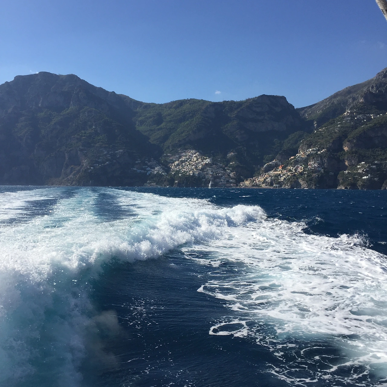 며칠은 더 머무르고 싶은 포지타노를 뒤로하고 살레르노로 가는 선박에 탑승했다. 내부 선실에는 바람을 피하며 앉아가는 할아버지, 할머니들이 주로 계시고 2층이나 배의 뒷부분에는 포지타노의 전경을 조금이나마 더 눈에 담고 싶은 젊은이들로 북적인다. 바다 위로 흰 물보라를 일으키며 배가 점점 선착장에서 멀어진다. 포지타노의 절벽과 형형색색의 건물들이 한눈에 들어온다. 너무 아름다워서 이 마을에 이렇게 잠시 스치듯 떠나야 한다는 것이 못내 아쉽다.