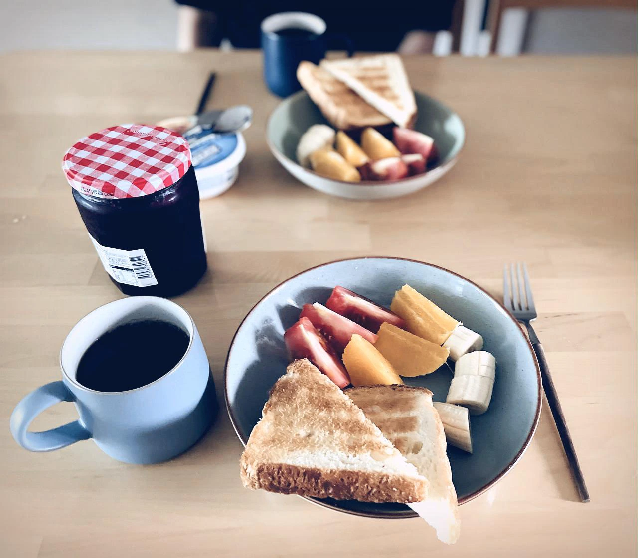 4) 크림치즈와 잼, 포크를 세팅해둔다.