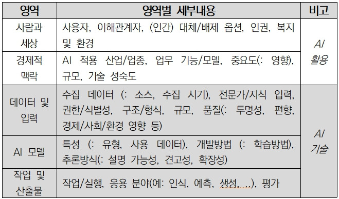 <표 6.1> OECD의 AI 분류 프레임워크 개요
