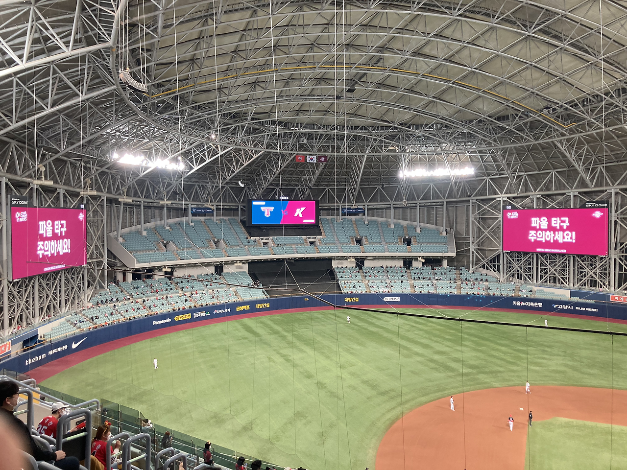 돔이라서 그런지 사람이 별로 없어서 그런지 처음 박수 치는 사람의 그 박수 소리가 어찌나 명확하게 들리는지. 정말 다 같이 한 마음으로 응원한다는 느낌을 받았어요.