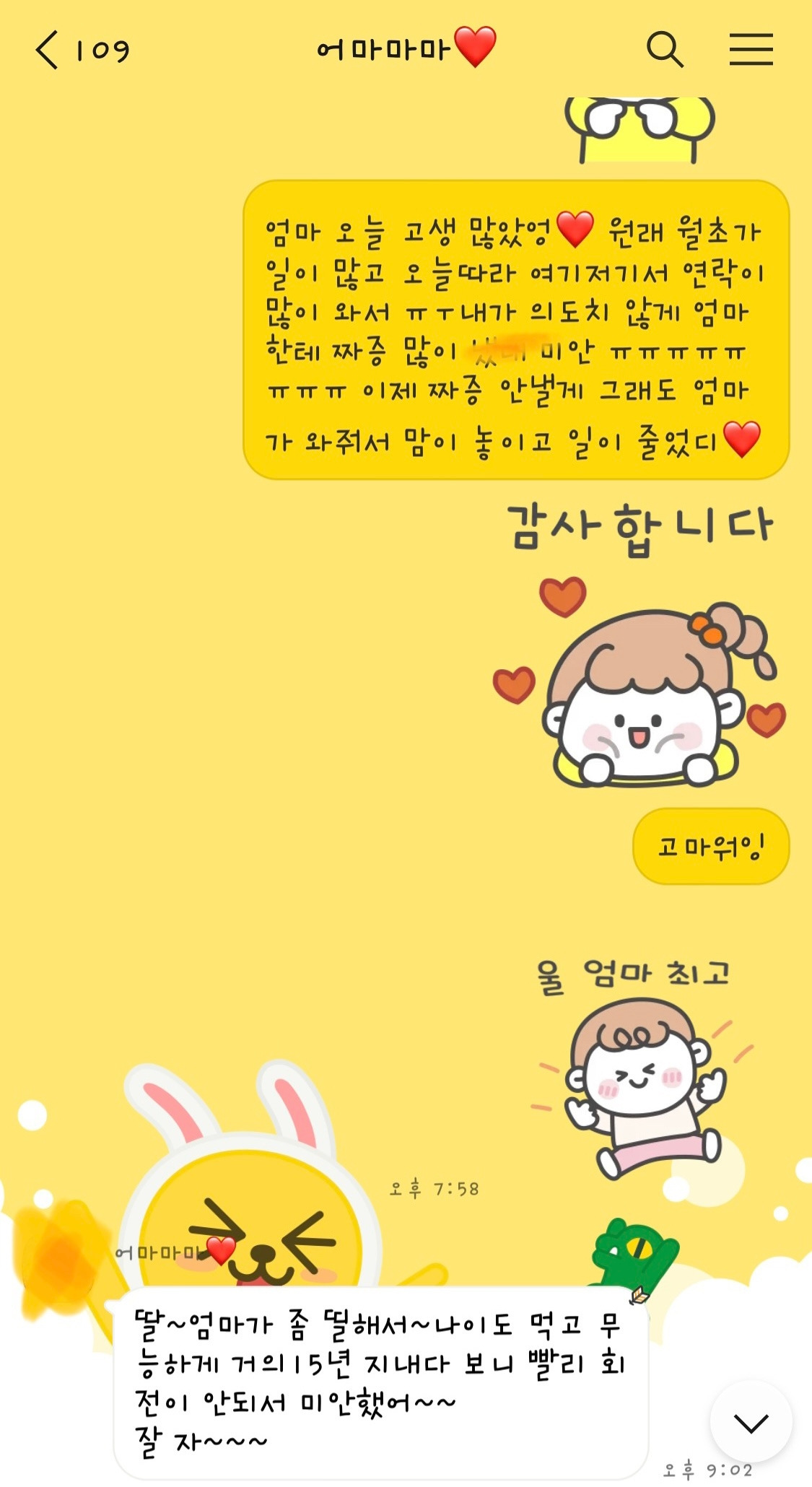 하지만 다짐이 무색하게 일이 몰아치고, 시간은 촉박하고, 단순 업무인데 또 틀린 엄마에게 “내가 이렇게 하지 말랬잖아”라고 격양된 목소리로 말하는 난 엄마를 부려먹는 못된 딸이다. 엄마 미안.