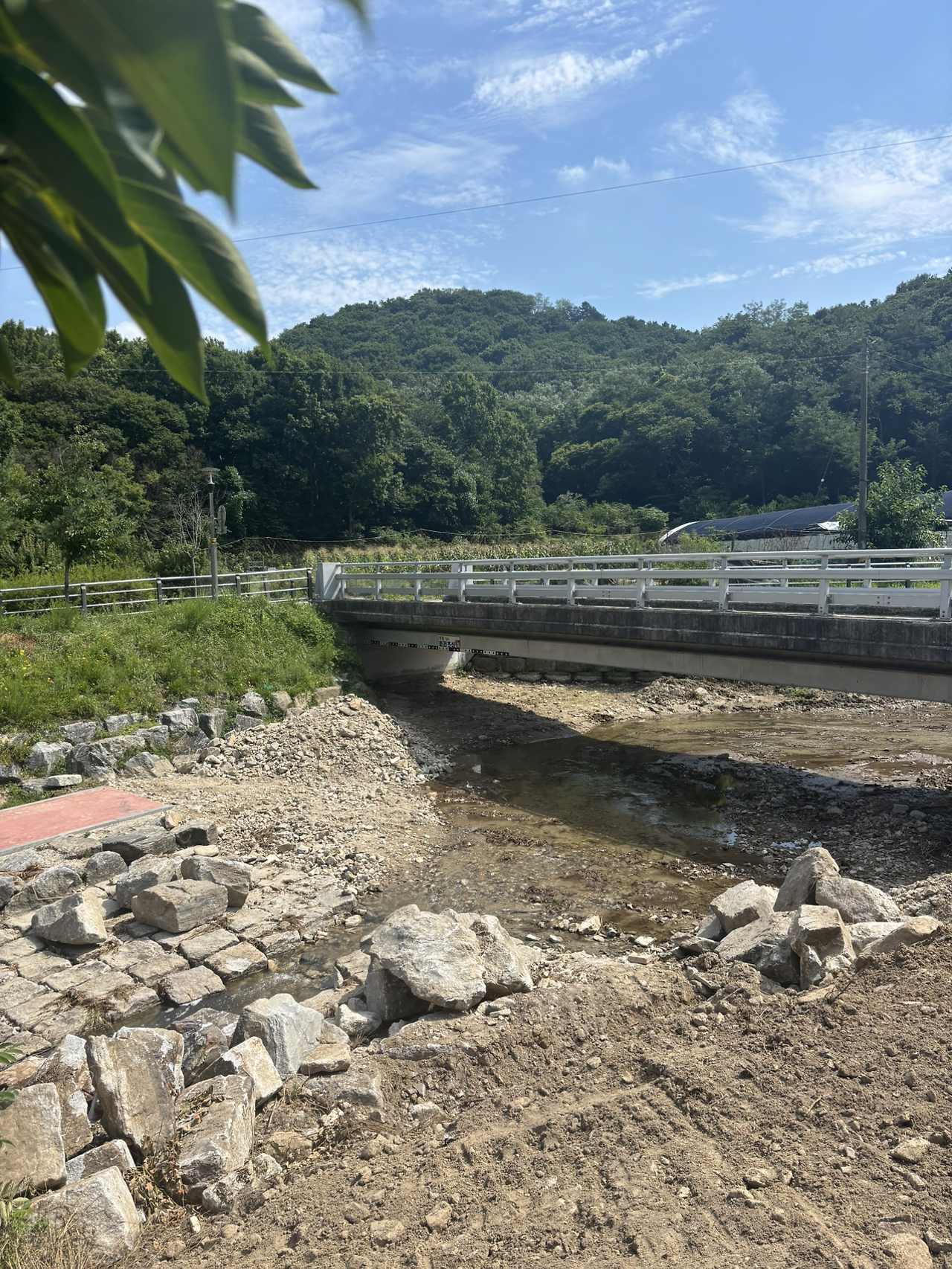 현재 반석천의 모습 오른쪽이 1.5m 제방이 있던 자리로 한창 공사 중이다. 또 어떤 새로운 모습으로 변할까?
