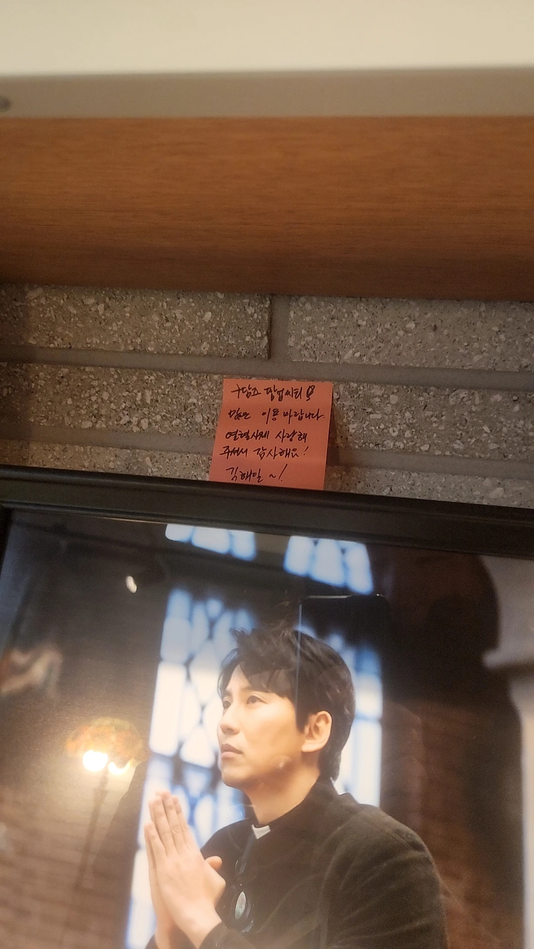 뒤를 돌면 열혈사제 배우들에게 메시지를 쓰는 메모지와 펜이 있다. 나도 하나 썼는데, 박경선 검사님과 김해일 신부님을 향한 팬심을 적어두고 왔다.