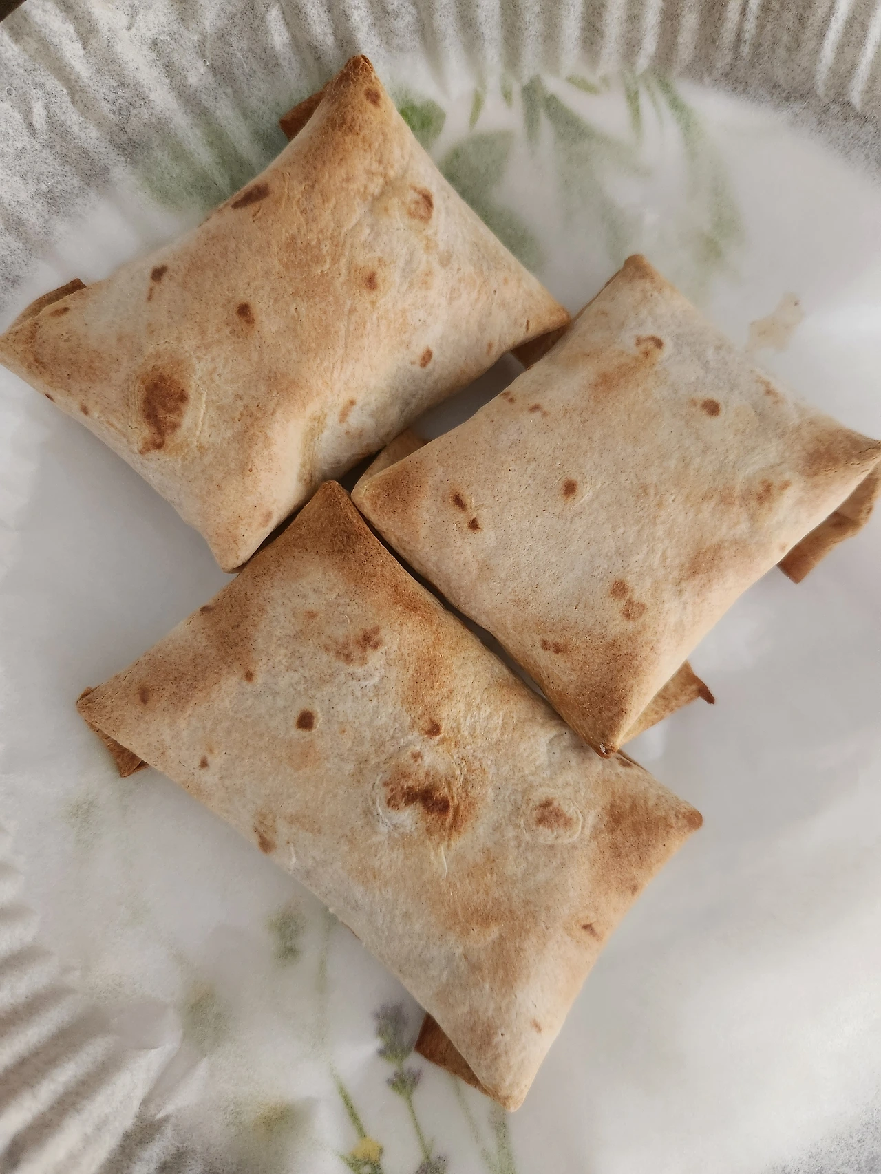 이마트에서 장 볼 때 고른 유산슬을 카레에 싸먹거나 찍어먹는 난에 넣어서 춘권처럼 접었고, 그걸 에어프라이어에 구운 것이다.