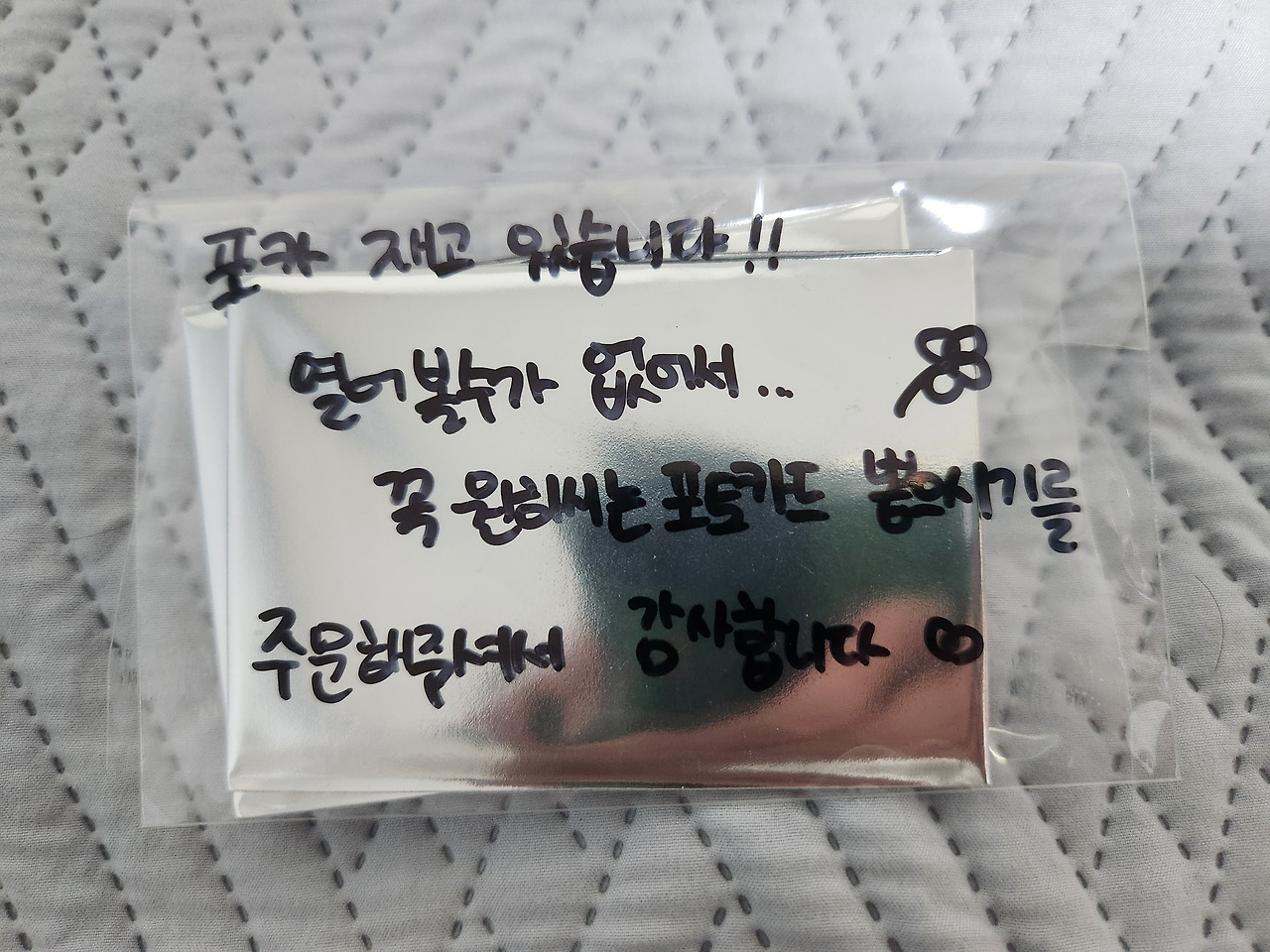 이렇게 손글씨로 적어주실 줄은 생각지 못했는데, 친절하게 적어주셔서 정말 감사했다. 그 덕분이었는지 포토카드는 행운이 가득했다.