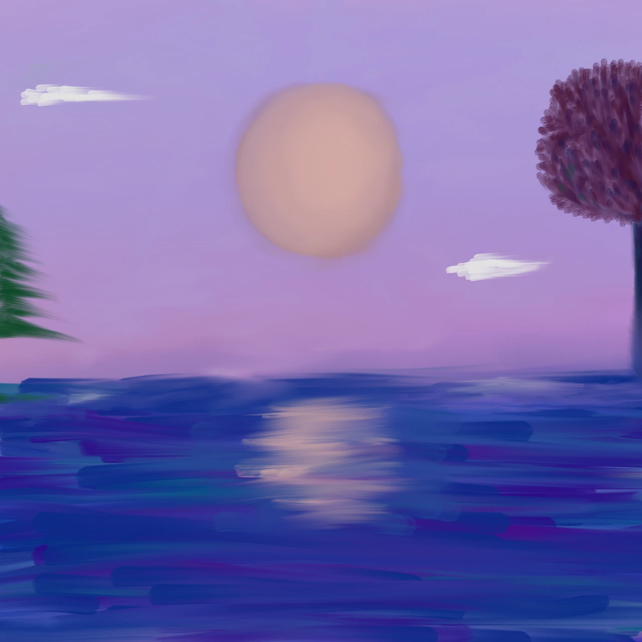 좌우의 나무들과 중앙의 크고 동그랗게 뜬 달, 묘하게 지나가는 구름까지... 잘 그린 그림은 아니더라도 각 색들 중 누구 하나 튀지 않는 그림이라 유난히도 편안한 기분이었다.