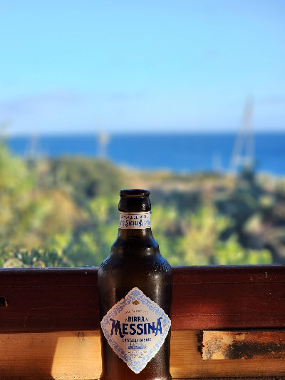 숙소로 돌아가야 할 시간인데 지도를 보니 약 2km 정도만 돌아가면 아름다운 또 하나의 해변을 볼 수 있을 것 같아 욕심이 나는데 친구가 걱정되었다. 친구는 가능하다고 했다. Cala Azzurra로 향했다. 노란 소국 같은 꽃이 흐드러지게 피어 있다. 처음으로 Bar가 보인다. 얼마나 반갑던지. 오늘 자전거를 타고 섬을 도는 동안 어디에서도 보지 못해 목이 타던 차였다. 집에 가야 할 걱정 따위는 날아가 버렸다. 마침 영업 중이었다. 친구는 주스 한잔, 나는 메시나(맥주) 한 병을 주문했다. 바다를 볼 수 있는 통창이었다. 우린 서로 건배를 하며 오늘 투어를 자축했다.
