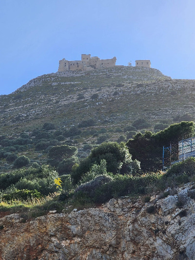 우리가 머무른 3박 4일 중 둘째 날 점심때쯤 되어 날씨가 좀 개었을 때 산타 카테리나(Santa Caterina)성을 향해 출발했다. 성은 이 섬 중앙에, 제일 높은 곳에 있다. 길은 포장이 잘되어 있었다. 처음엔 쉽게 올라갔다 올 수 있으려니 했다. 중간쯤부턴 갑자기 경사도가 급해지고 길도 좁아지고 돌길이 시작되었다. 조금씩 불던 바람은 심해졌다. 멀리 있던 시커먼 구름마저 가까이 오고 있어 불안해졌다. 같이 간 친구의 걸음이 빠르다. 역시 한 살이라도 젊으면 다르구나! (나중에 친구에게 들은 말은 무서워서 빨리 갔다는 것이었다)