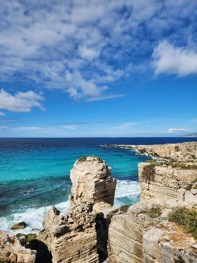 지도를 보면서 가까운 해변부터 갔다. Cala San Nicola Beach 물빛이 엄청 투명하고 맑다. 바위 해변이라 물놀이할 수는 없지만 보는 것만으로도 기분이 좋다. 다시 달려 ‘Cave caivallo’ 동굴 안에서 밖을 보는 풍경이 예쁘다. 동굴 밖에 자전거를 세워놓고 동굴 안에서 밖을 찍으면 아주 멋진 인생 사진이 된다.