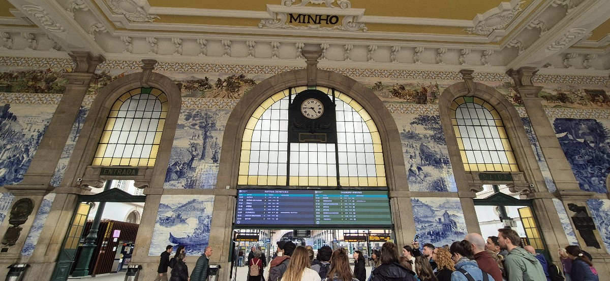 상 벤투역으로 간다. 포르투 인근 도시들을 가려면 상 벤투역을 자주 이용을 해야 하기 때문에 위치와 숙소에서 가는 길도 알아두면 좋을 것 같았다. 그런데 막상 도착한 상 벤투역은 기차가 드나드는 역이라기보다는 그저 관광지 느낌이 났다. 단체 투어를 하는 사람들이 역 안 곳곳에서 가이드의 설명을 듣고 사진을 찍고 있었기 때문이다. 기차를 타기 위한 사람들보다 역을 관광하기 위한 사람들이 더 많았다.