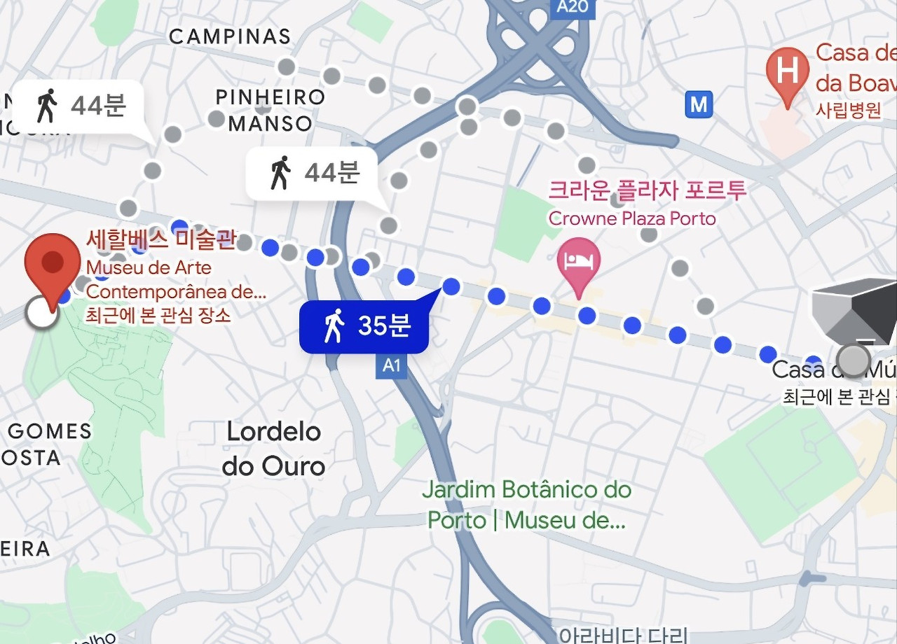 오늘은 도루강변을 배경으로 두고 운행하는 포르투 1번 트램을 탈 생각이었다. 그런데 1번 트램은 Casa da Musica와 Museu de Arte Contemporanea de Serralves(세랄베스 현대미술관)을 거쳐가지 않는 관계로 갈 때는 걸어가서 포르투 시내로 돌아올 때 1번 트램을 타기로 결정한다.