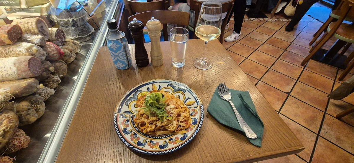 잘츠부르크로 돌아와 여기서의 동행이었던 그녀가 알려주었던 식당으로 저녁을 먹으로 간다. 스파게티 맛집이면서 가격도 괜찮은 식당이었다. 이번 여행 첫 스파게티로 토마토스파게티와 화이트 와인 1잔을 주문한다. 무엇보다 식당 서버(?)가 상당히 유쾌해서 마음에 즐거웠다.