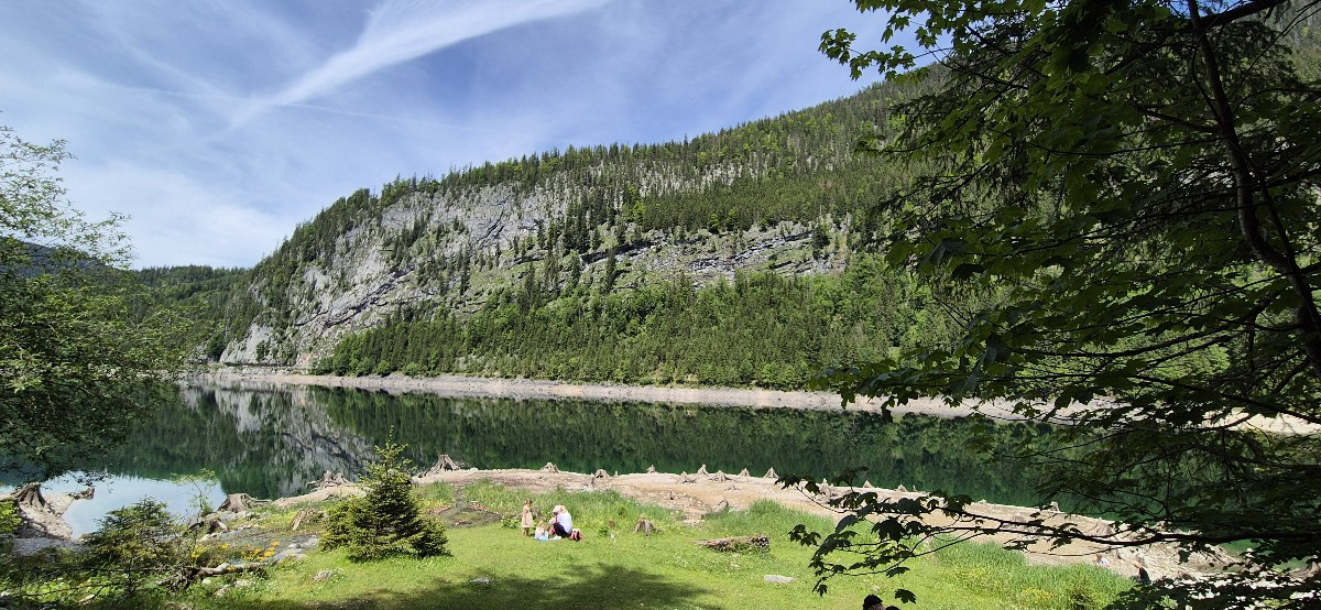 준비해 간 샌드위치를 점심으로 먹으며 고사우 호수 트래킹을 시작한다. 경치도 보고, 사진도 찍고, 호숫물에 손도 담가보고, 그렇게 1시간 10분이 걸렸다. 고사우 호수 트래킹 시간은 넉넉하게 1시간 30분은 잡아야 할 듯하다.