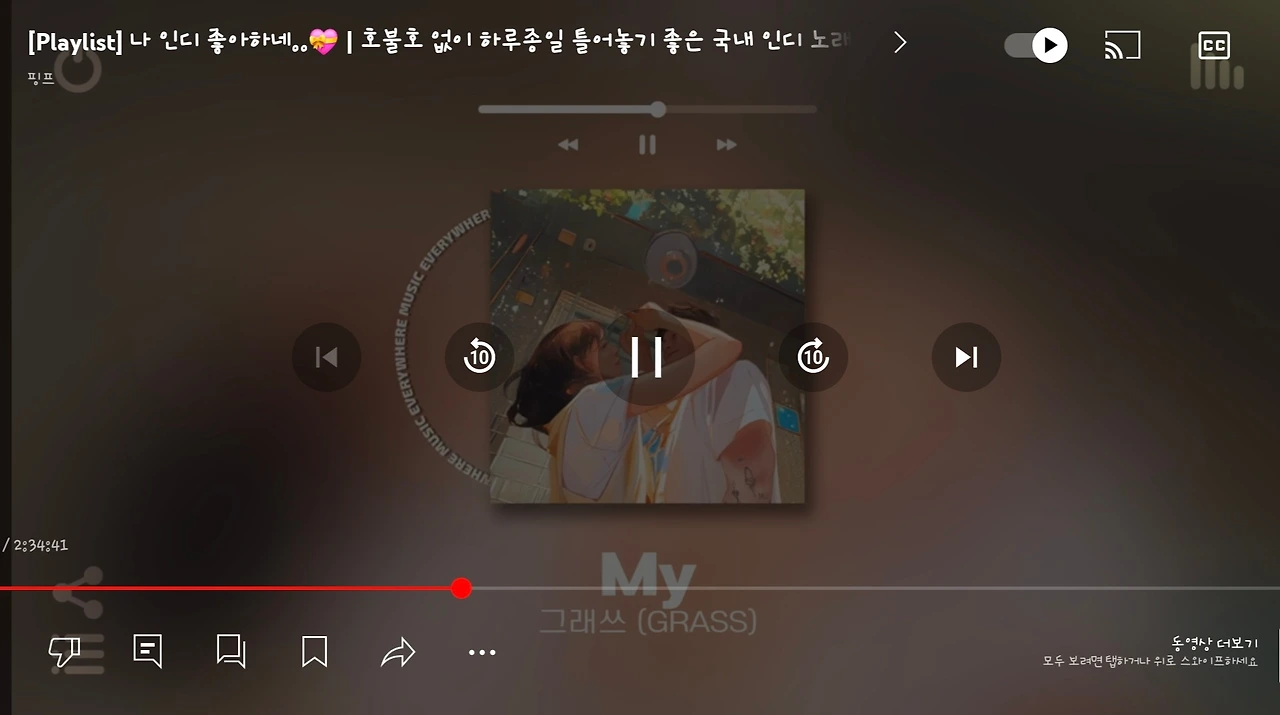 나만의 것이 아니라는 사실이 속이 쓰라리고 아쉬운 와중에도 나의 취향으로 구성된 플레이리스트를 유튜브에서 발견한 순간 다행이다 싶었다. 손쉽게 좋아하는 음악을 들을 수 있으니 시간절약과 더불어 편했다. 모두가 함께 즐길 수 있어서 손쉽게 정보를 얻고 공감할 수 있는 누군가가 있고, 나의 취향을 편하게 찾아내어 내가 원하는 대로 활용을 할 수 있어서 공공재로서의 취향 공유가 마음에 들었다.