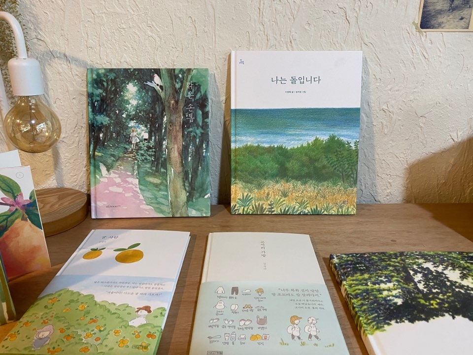 모든 일에는 이유가 있다고 믿는다. 갑작스럽게 잡힌 일정 때문에 시간이 넉넉하게 도착했던 대구, 비가 와서 하늘이 우중충했기에 더욱 밝게 보였던 조명 밑 <사과 서점> 팻말, 시선이 닿지 않게 낮게 전시되어 있어서 무릎을 굽히고 천천히 읽어봐야 했던 그림책. 모두 내 지친 마음을 위로하기 위함이었음을.