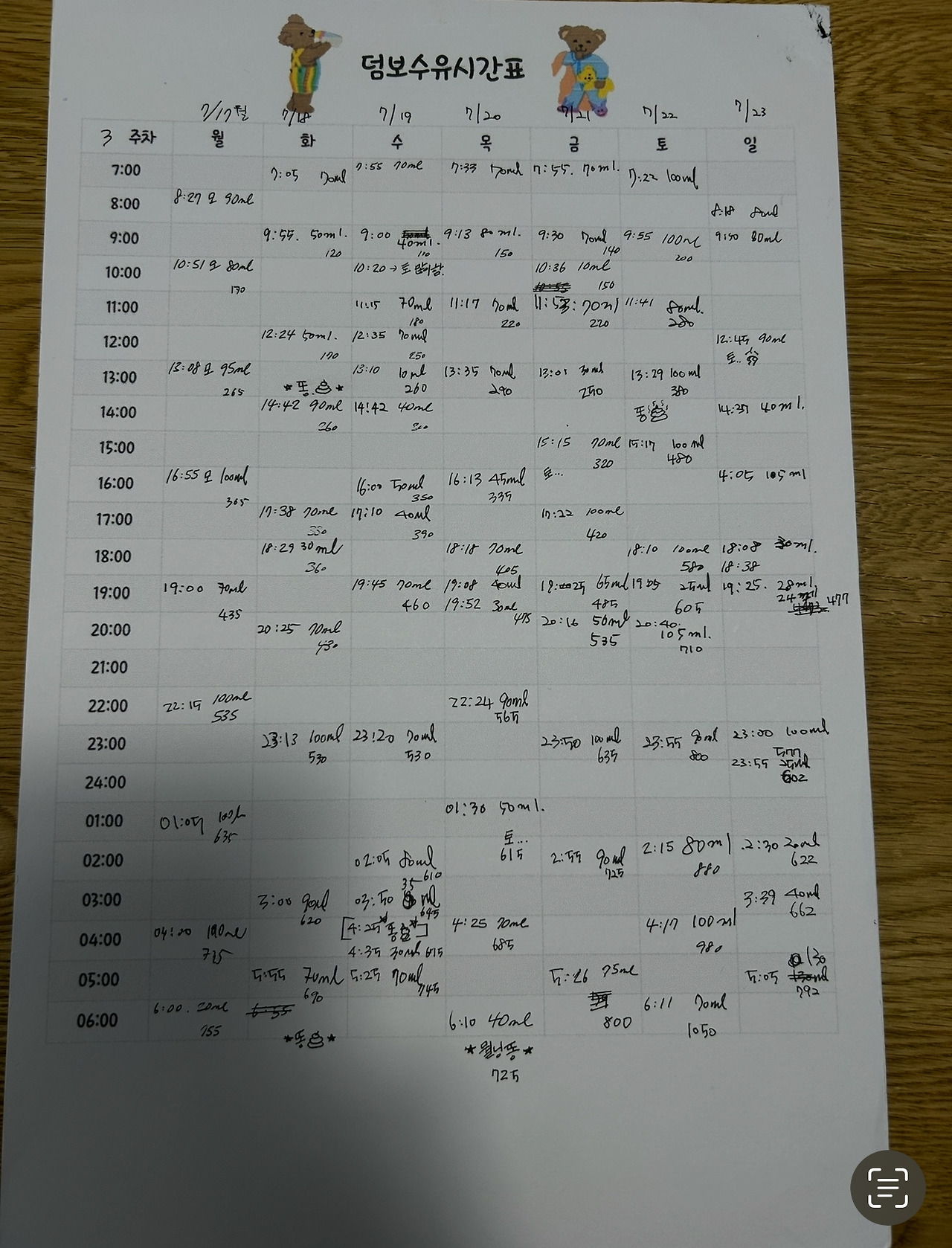 한국에서 초음파 검사를 했을 당시 산부인과 의사 선생님께서는 아기 위가 작으니 자주 먹여야 할 것이라고 하셨었다.