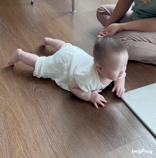 6개월이 된 덤보는 기어가기를 습득했다. 이전에도 몇 번 성공하기는 했었지만 다시 하지는 못했었다. 그러던 어느 날 갑자기 덤보는 기어 다니기 시작했다. 원래 기어 다니던 아이처럼 말이다. 제자리에서 돌기도 한다.