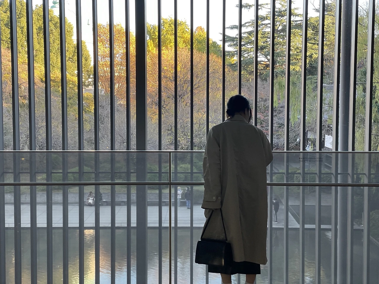 호류지 보물관 내부에는 사람이 많지 않아 넉넉하게 둘러볼 수 있었다. 나에게 이곳을 소개해준 동행자(36세/건축가)가 설명해 준 대로 이곳의 마감을 유심히 살핀다. 건물 안부터 외벽까지 하나로 이어지는 마감재의 라인, 그 라인의 y축에 맞춰 직각으로 얇게 세워 시선을 방해하지 않는 난간, 그 시선 끝에 건물을 비추는 물과 건너편의 커다란 나무까지. 군더더기 없는 설계와 완벽에 가까운 마감이 도쿄에서의 반나절을 기꺼이 쓸 수 있게 만든다. 이곳에서 나는 고요함이라는 것도 창조해 낼 수 있다는 것을 실감한다.