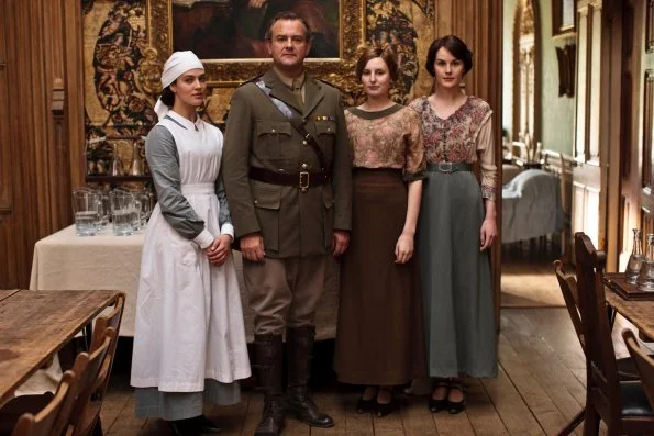 징집에서 면제된 그랜섬 백작과 여성인 코라 그랜섬 부인은 자선 행사 등 할 수 있는 일을 찾는데, 여기에 대해 매튜의 어머니인 이소벨 크로울리 부인이 다운튼을 요양원으로 만들 것을 제안한다. 이에 다운튼은 큰 변화를 맞이한다. 실제로 버크셔의 하이클레어 성에서 촬영된 다운튼 애비는 규모가 큰 성인 만큼 시즌 2에서 1층의 대강당과 홀, 시즌 내내 그랜섬 백작이 애용하던 서재 등 많은 공간이 상이군인들의 요양원으로 변모한다.