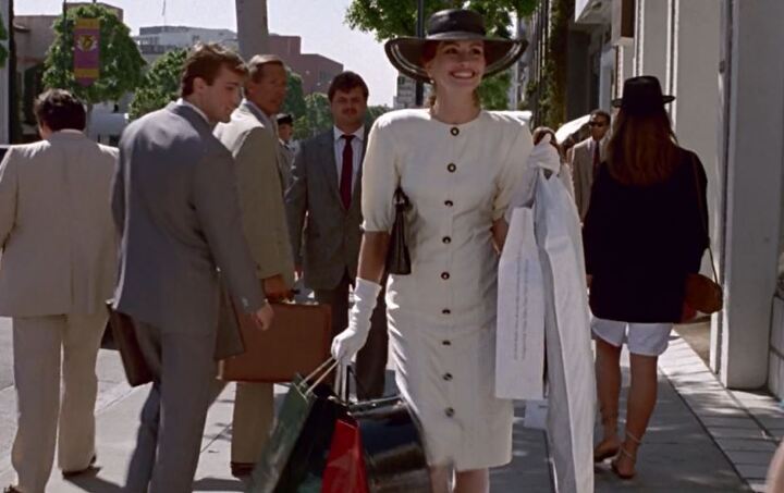 이처럼 영화의 스토리와 연출이 완성되면 작품에 색을 더하는 것은 바로 캐릭터 빌딩이다. 그리고 이것은 의상과 소품 등이 담당한다. 당시 줄리아 로버츠가 입은 빨간 드레스와 검정 드레스는 모두 그녀를 돋보이게 한다. 그리고 이러한 드레스들은 에드워드가 매력적인 비비안에게 빠져들면서 두 사람의 관계가 발전하는 것을 시각적으로 보여준다. 뿐만 아니라 줄리아 로버츠가 입은 갈색 원단에 흰색 도트가 있는 원피스는 오늘날에도 회자될 정도이다. 그녀의 머리 색깔에 맞춘 원피스처럼 의상 등의 시각적 특성은 캐릭터 빌딩에 매우 중요하다.