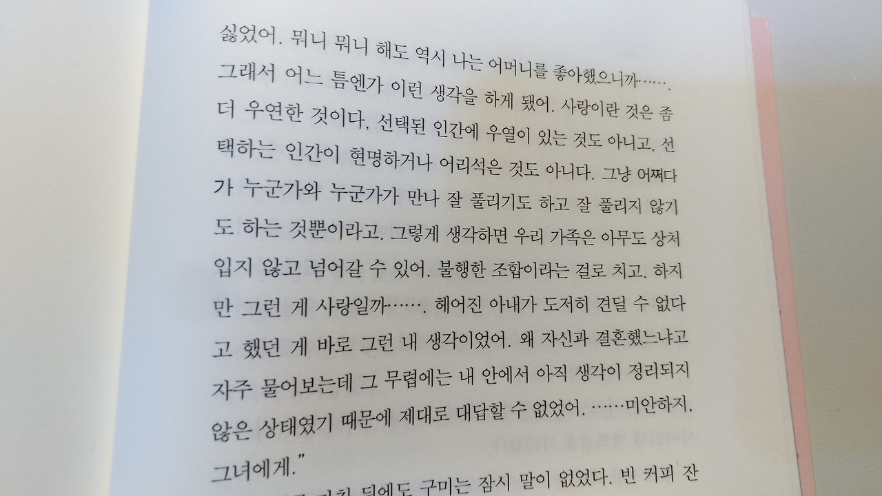사실은 그렇지 않다고, 좋은 여자였을 거라고 생각하면 어머니로 상처받은 자신의 아픔이 거짓이 되는 것 같다는 구절이 있었다.