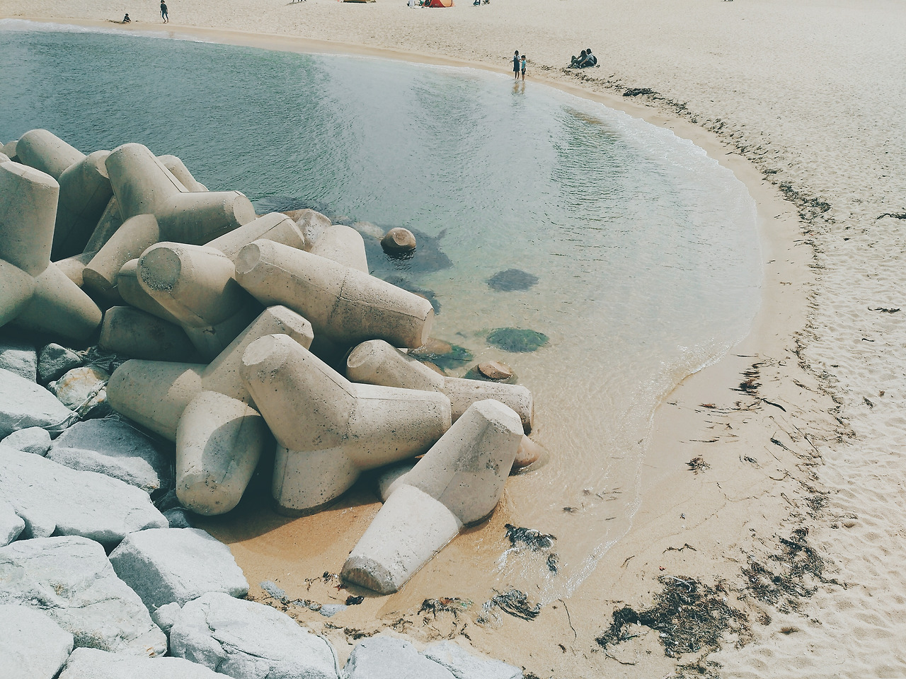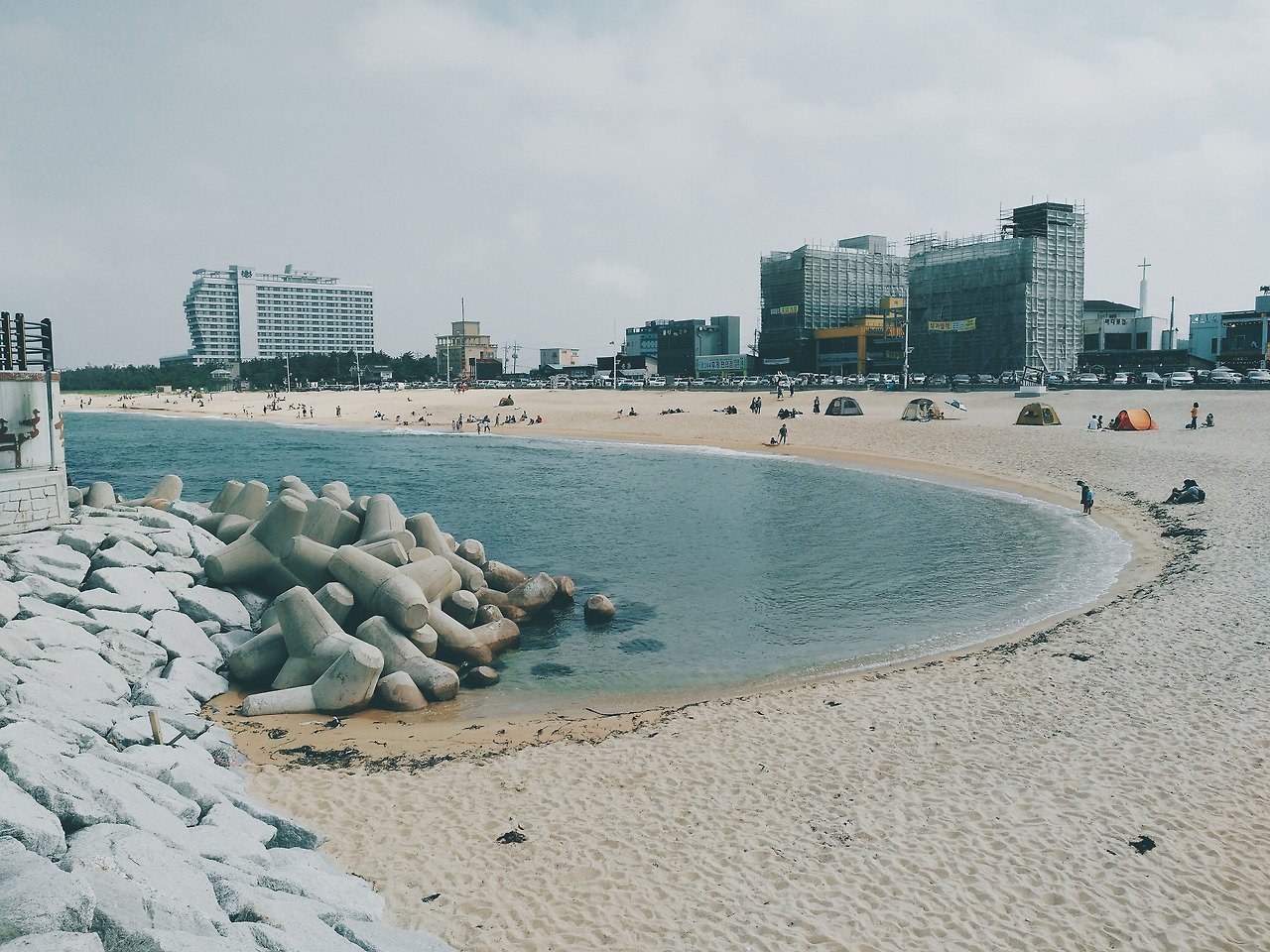 뒤뚱거리는 아가들, 노란색 커플티를 맞춰 입고 사진을 찍는 커플,주인옆을 지키는 의젓한 강아지,수상해보이는 무슨관계일까?의 남녀, 짜장면 배달을 위해 해변을 가로지르는 사륜오토바이 등등등
