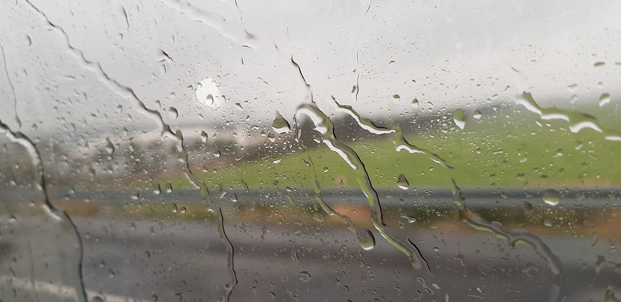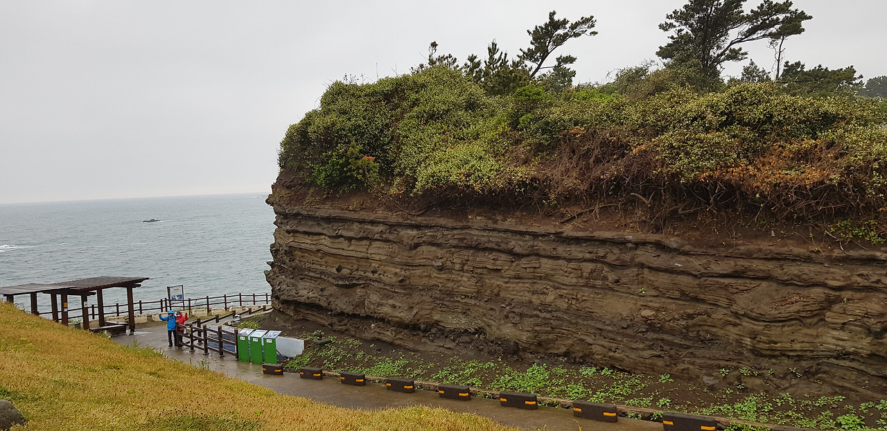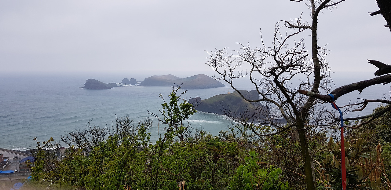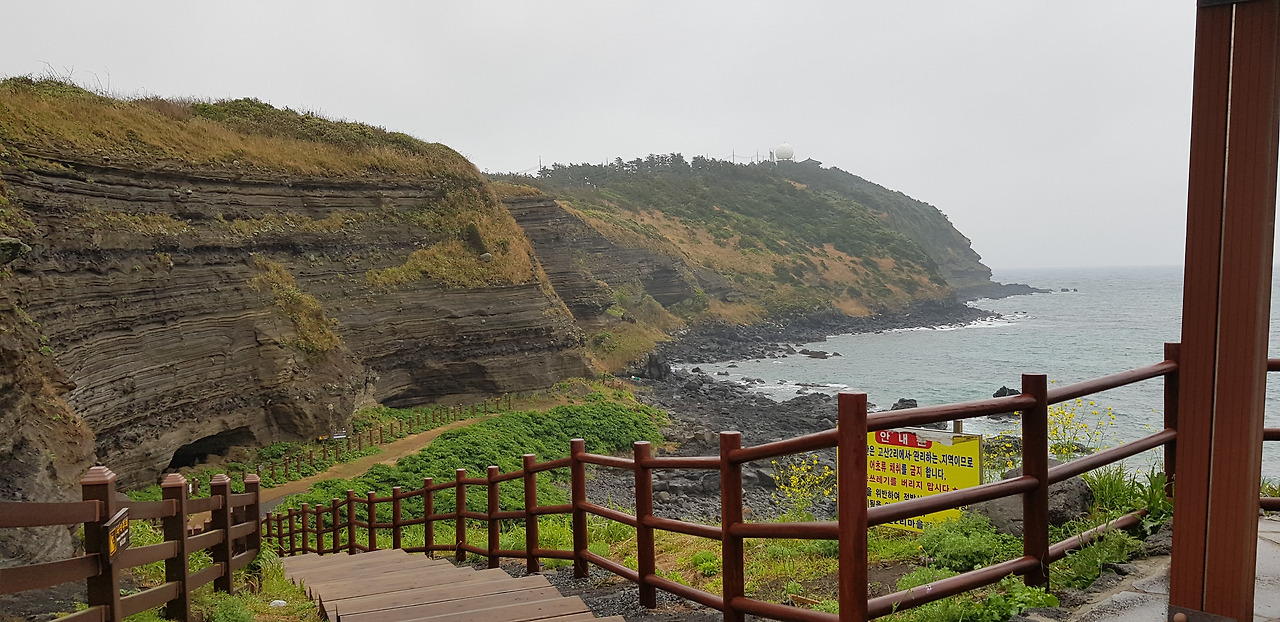 12코스의 시작점이 가까워오면서 버스 창문을 세차게 두드리며 비가 내리고 있었다.