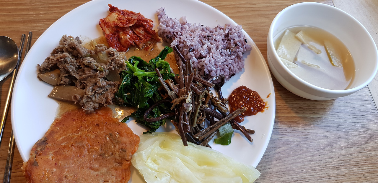 고기와 김치전을 맛볼 수 있어 행복한 아침 식사였다.