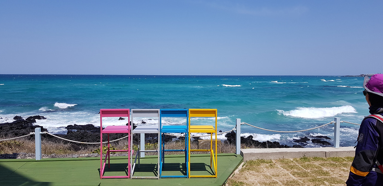 탁트인 바다를 눈앞에 두고 홀짝이는 커피가 맛이 없을리 없겠지만 그 잠깐의 시간을 위해 바다곁에서 요란하게 자리잡고 있다는 느낌이 든다.