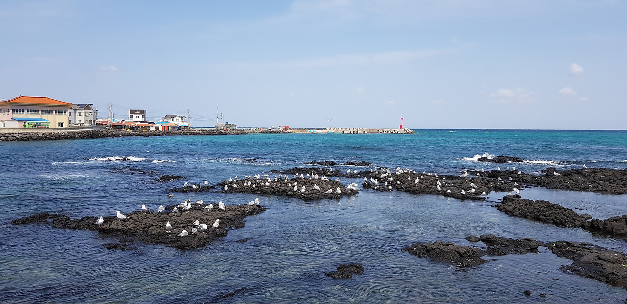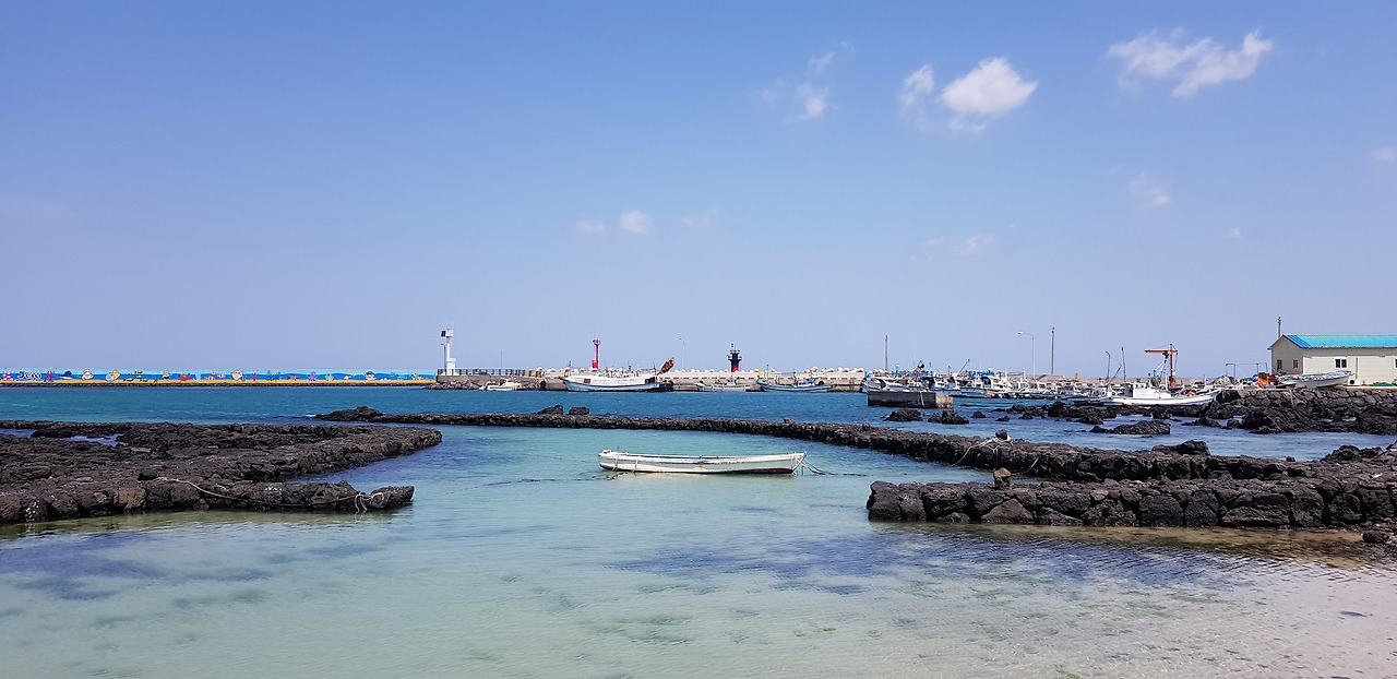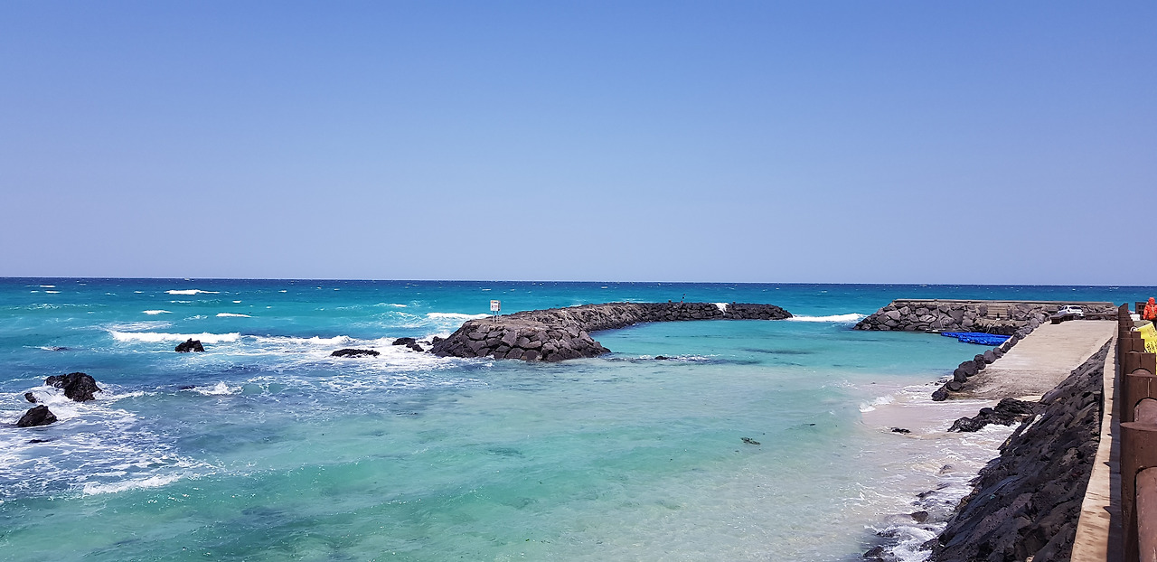 협재해변은 옅은 코발트 빛의 잔잔한 평화라면