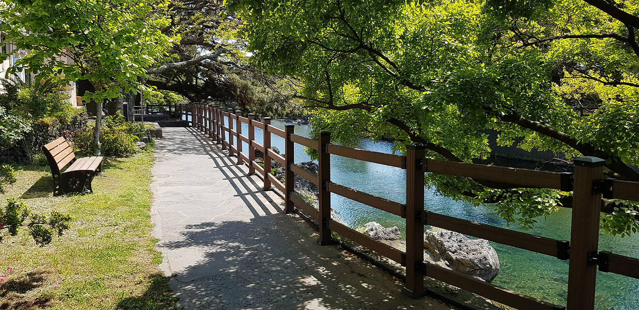 외도천교쪽은 커다란 나무가 만들어주는 그늘이 산책길을 감싸주고 있었다.