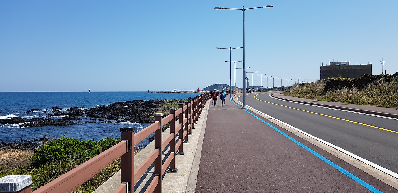 왼쪽엔 바다를 오른쪽엔 차가 계속 지나다니는 도로를 끼고 걷는 길이 반복되고 있었다.