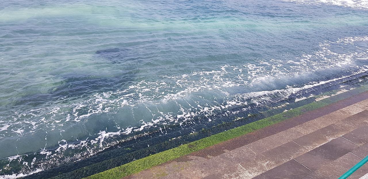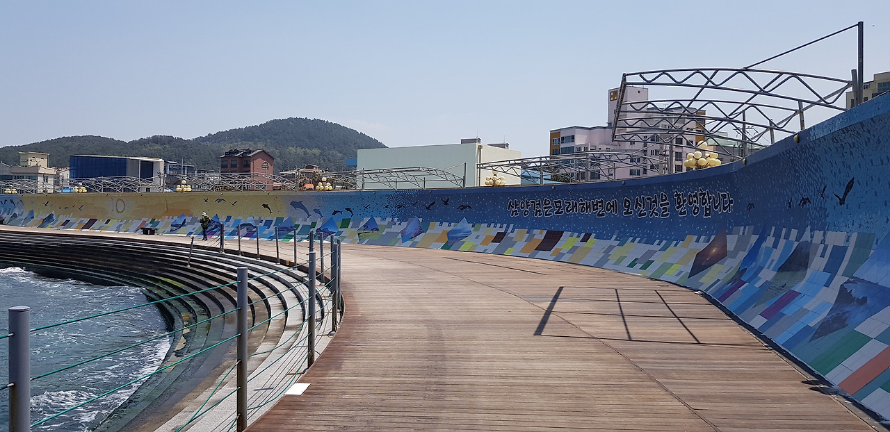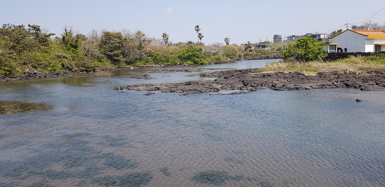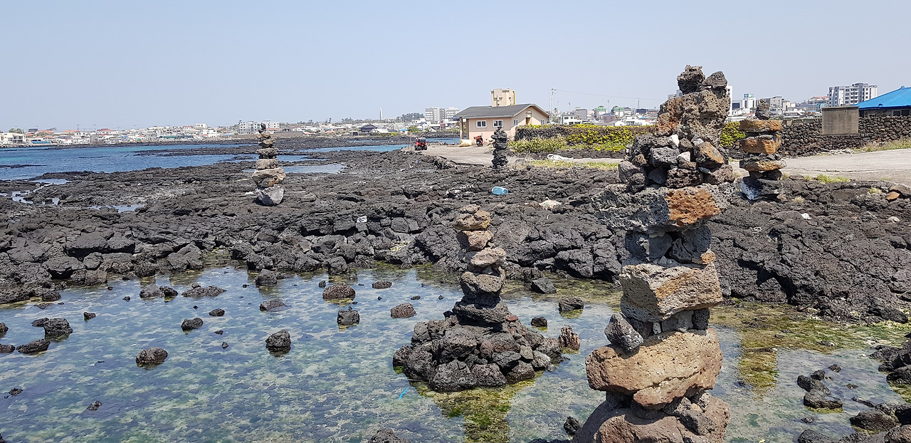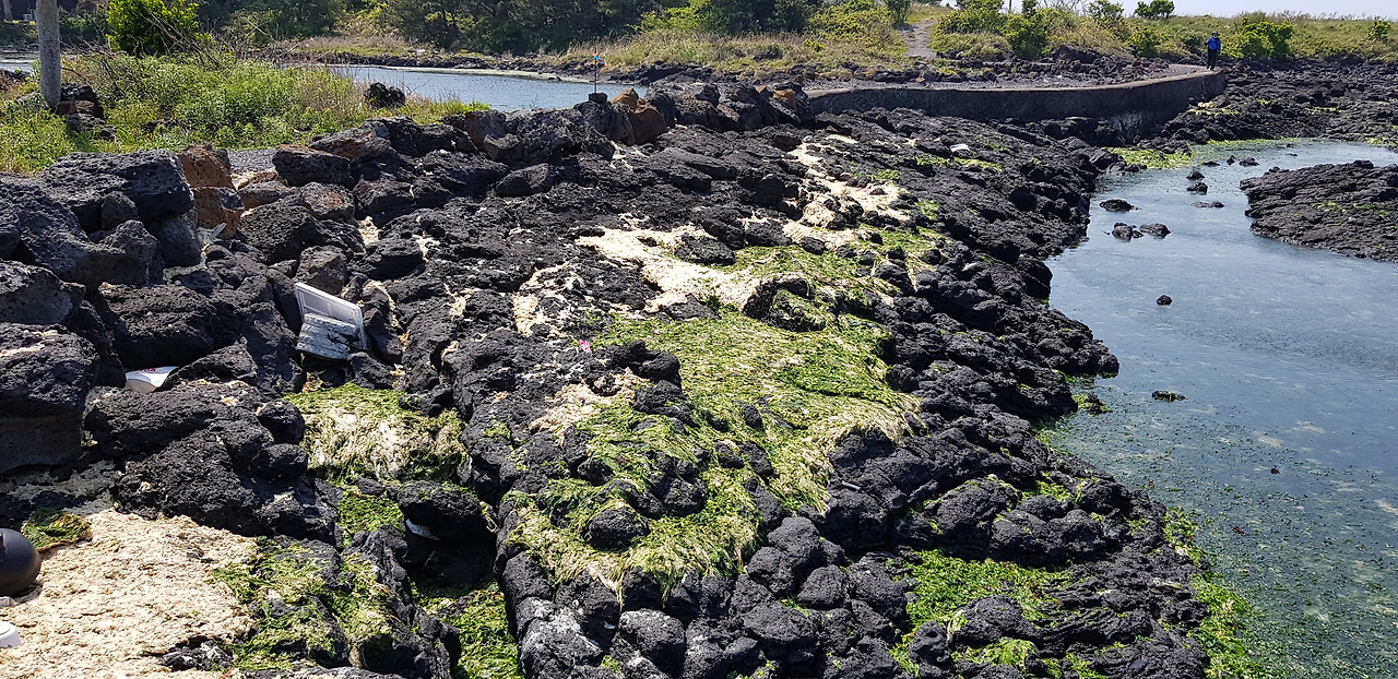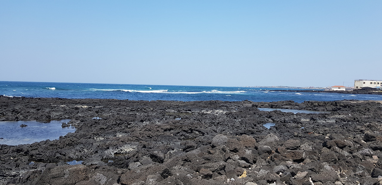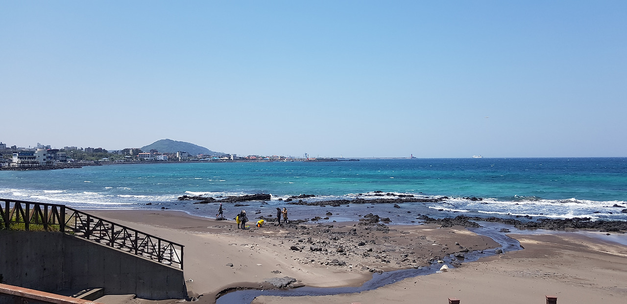 검은모래로 유명한 삼양해수욕장 끝지점에서 돌로 쌓은 둔턱에 앉아 발을 담궈, 찰방 찰방 물장구를 치고 싶었다.