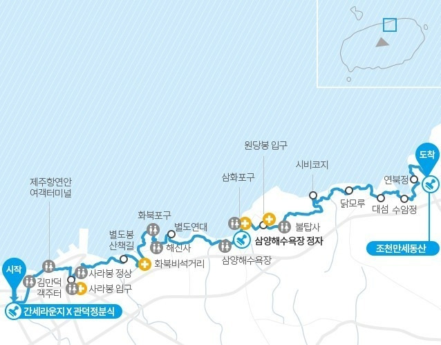 제주원도심에서 시작하여 조천으로 이어진 18코스는 무려 19.8km나 된다.