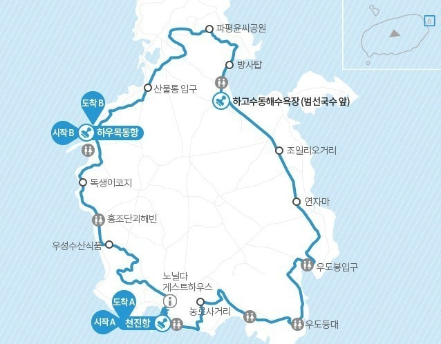 제주 각각의 이름으로 붙여진 해수욕장, 바다가 모두 느낌이 다르고, 떠오르는 대표 경치가 다르게 저장되어 있듯이 우도 안에서도 해변마다 개성을 자랑하고 있다.