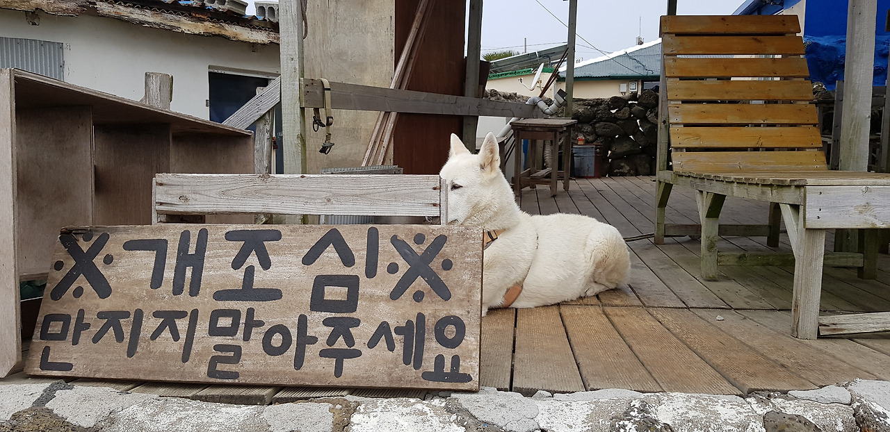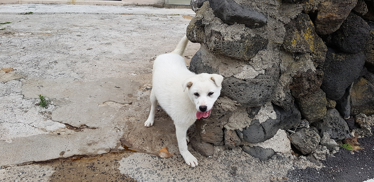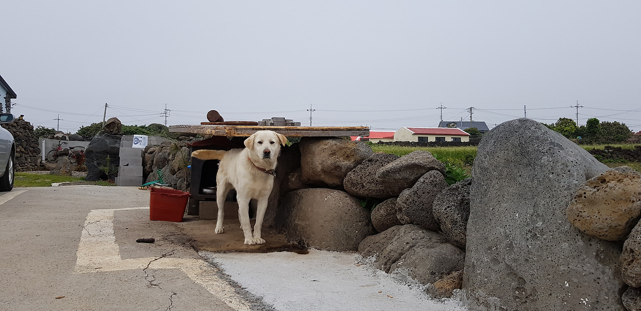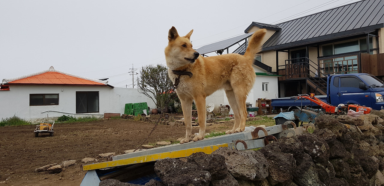 우도는 제 집 담벼락에 올라 망루를 지키는것 같은 용맹한 강아지들이 많았다.