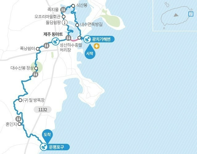 성산일출봉을 끼고 걷는 길이면 숙소와 가까운 길들이라고 볼 수 있었다.