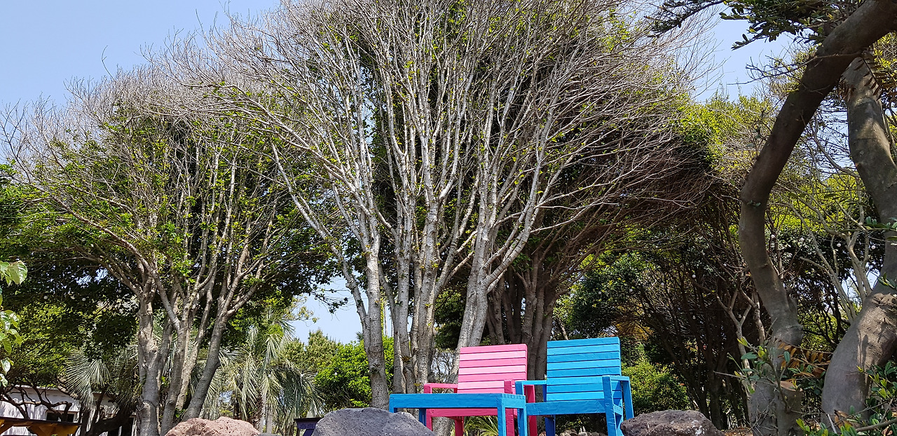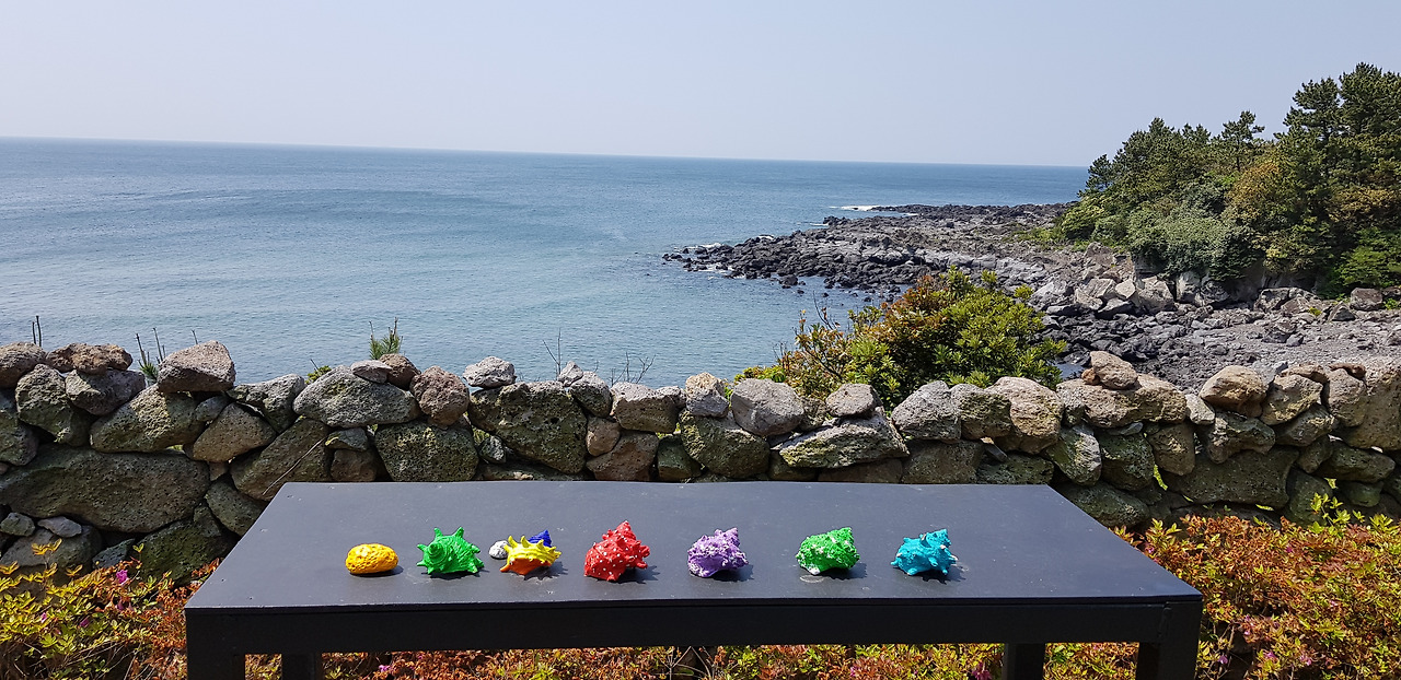 농협은행 제주 수련원과, 리조트에서 잘 정비해둔 길은 알록달록한 색감이 포인트가 될 만한 장식들이 과하지 않게 있어서 찾아보는 재미가 있었다.