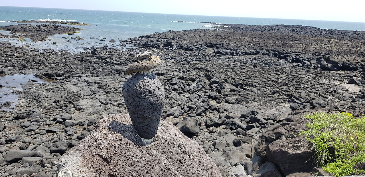 표선 해안길과 해안도로 사이에는 돌무더기가 그득 그득 들어차 있어서 멀리 보이는 바다가 애닳게 느껴진다.